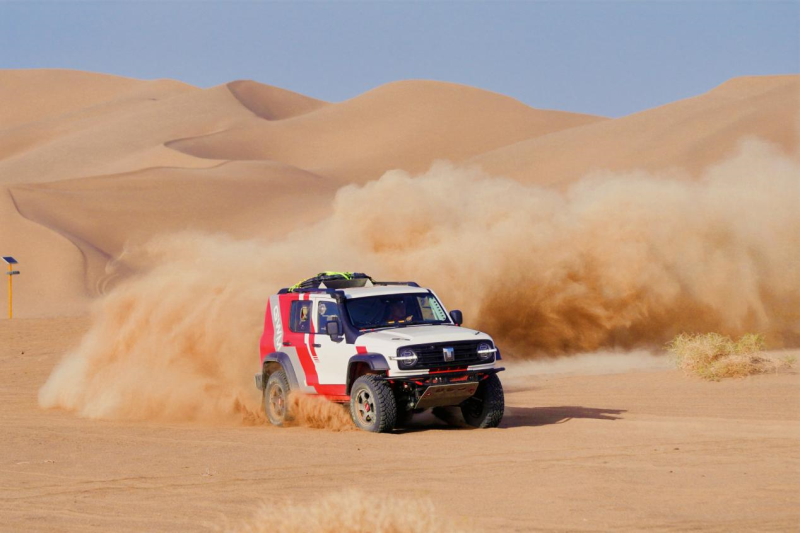 真正的实力,从不畏惧实战检验。坦克300在专业越野赛事与重大国家任务中,一次次以硬核表现印证硬核座驾的含金量。在2025中国环塔国际拉力赛中,坦克300 Hi4-T在SS1温宿大峡谷赛段、SS2阿拉尔赛段,SS6克里雅河赛段,SS7叶城赛段,分别斩获量产组冠军和3个新能源量产组赛段冠军,展现无与伦比的可靠性。同年,坦克300 Hi4-T获得2025敦耐赛T2.E组别冠军。这项赛事以河床、戈壁与沙丘构筑超1000公里赛道,对车辆耐久性提出巨大考验,而坦克300 Hi4-T凭借强大油电协同能力与非解耦四驱,从容征服复杂地形一举夺魁。
